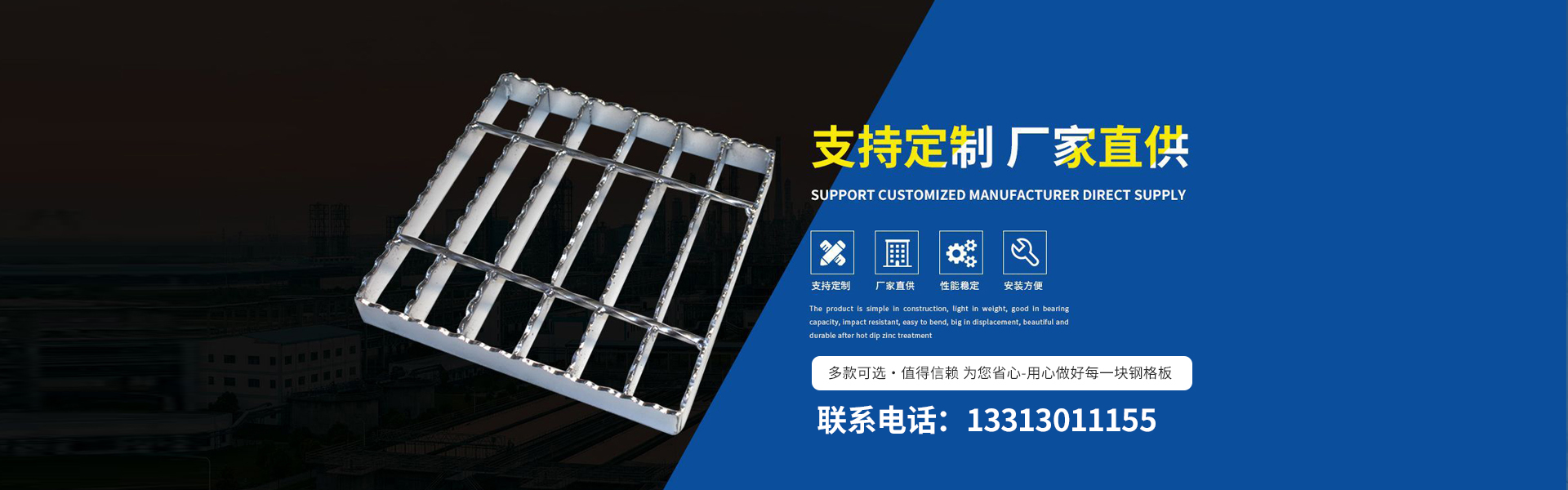公司產(chǎn)品有鋼格板、踏步板、溝蓋板、鋼格柵板、等產(chǎn)品。對于客戶要求的不同工作環(huán)境,承載力、跨度、形狀和顏色,提供相應(yīng)設(shè)計方案及成本控制。 我公司秉承“以客戶為中心,以低價高品質(zhì)為基礎(chǔ),以客戶滿意為目標(biāo)”的經(jīng)營理念,以優(yōu)惠的價格、好的技術(shù)設(shè)備來贏得用戶的信賴,衡水新超峰金屬網(wǎng)業(yè)制造有限公司熱誠歡迎廣大客戶光臨。 衡水新超峰金屬網(wǎng)業(yè)制造有限公司成立迄今,正是由于各界朋友們對于我們的持續(xù)支持與關(guān)懷,及本公司全體同仁辛勤的耕耘與付出,使公司持續(xù)發(fā)展與茁壯成長。展望未來,我公司人懷著感恩之心,更加追求...